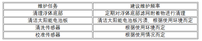 對(duì)于環(huán)境水質(zhì)監(jiān)測(cè)浮標(biāo),如工作環(huán)境良好,且系統(tǒng)工作正??梢匝娱L(zhǎng)維護(hù)周期??紤]到傳感器工作環(huán)境的多樣性,建議根據(jù)實(shí)際情況,定期對(duì)傳感器進(jìn)行檢查、清洗和校準(zhǔn)。