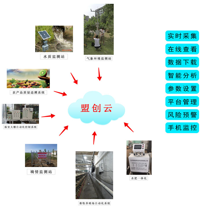 1、在線監(jiān)測環(huán)境中的空氣溫濕度、CO2、光照強度、光合有效輻射、總輻射、紫外輻射、風速、風向、大氣壓力、蒸發(fā)量、水深、液位、噪聲、粉塵PM1.0、PM2.5、PM10、TSP、電導率、含鹽量、ph、土壤水分、土壤溫度、ORP、管道流量和流速等參數(shù)。