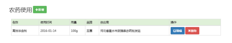5、農(nóng)藥使用流程。名稱、類型、品牌、供應(yīng)商、使用日期、使用方法、廠家資質(zhì)、銷售單位資質(zhì)。