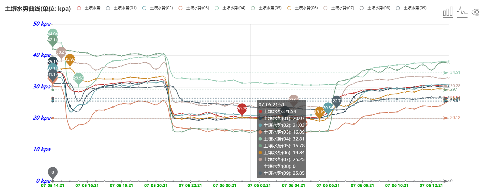 5、用戶可以隨時(shí)通過(guò)手機(jī)和計(jì)算機(jī)遠(yuǎn)程查看、下載數(shù)據(jù)。軟件可以查看數(shù)據(jù)編號(hào)、曲線走勢(shì)圖、最高值、最低值、平均值。用戶可根據(jù)土壤水分和電導(dǎo)率、水勢(shì)、氮磷鉀養(yǎng)分的數(shù)據(jù)變化來(lái)分析土壤各個(gè)參數(shù)之間的關(guān)聯(lián)性和相互影響。